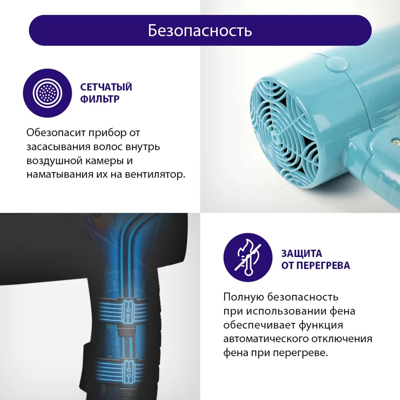 | Плюсы: | Компактный, дешёвый доступный, не пересушивает волосы. Складной, можно брать с собой |