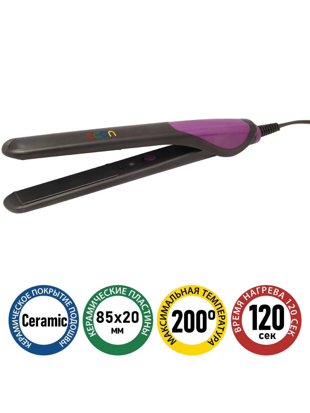 Выпрямитель для волос Econ ECO-BH002S Черный - фиолетовый