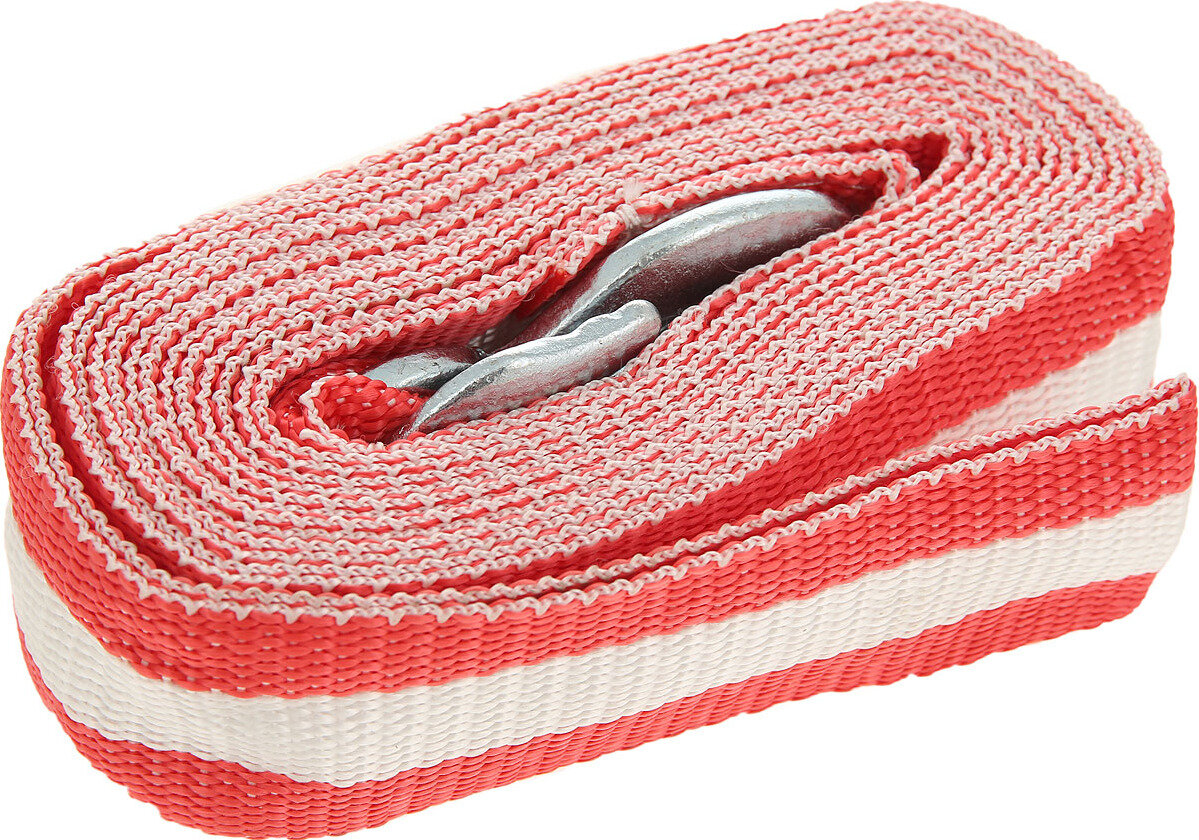 Трос буксировочный лента 5 т, 2 крюка, в блистере (стропа усиленная)