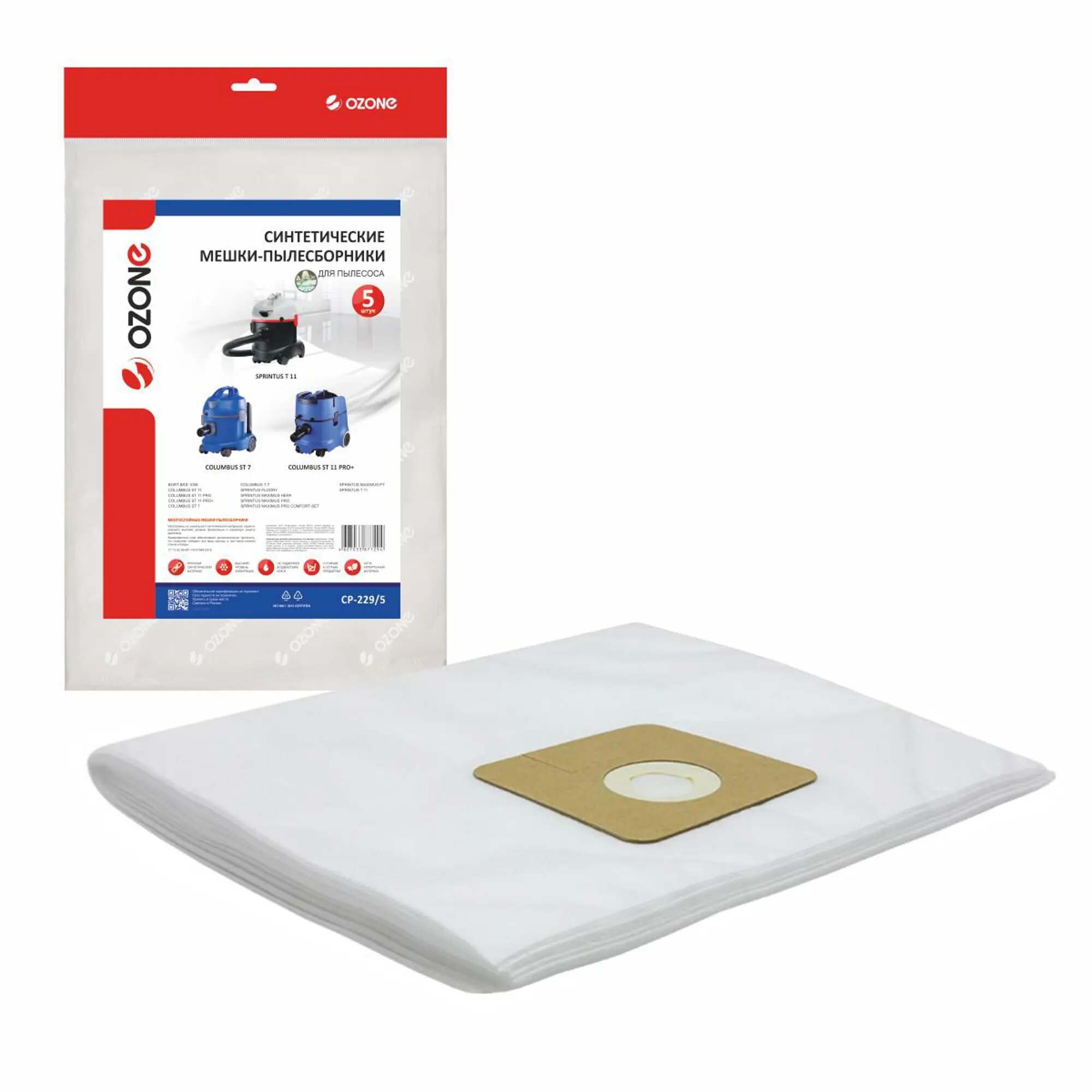 Синтетические мешки-пылесборники Ozone CP-229/5 для пылесоса COLUMBUS ST 7, ST 11, 5 шт