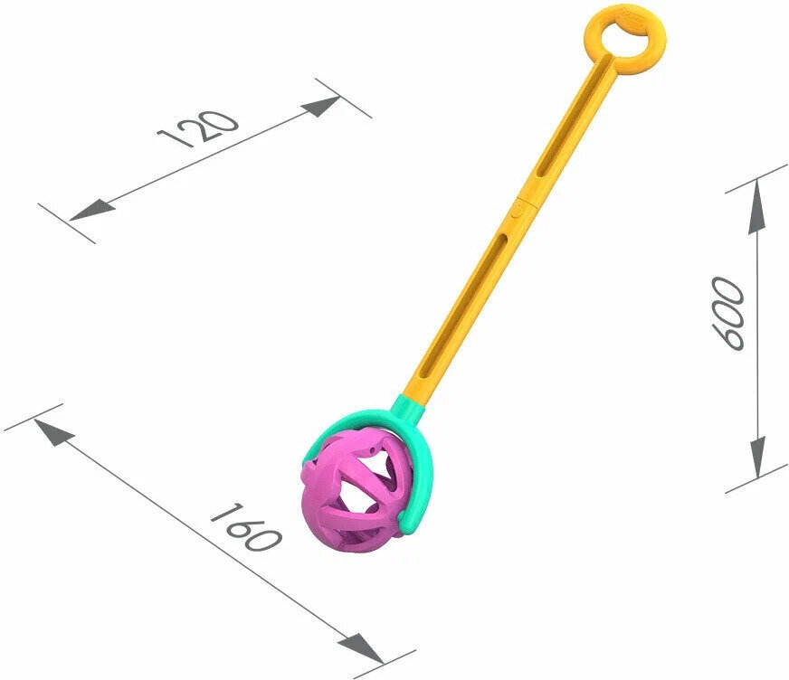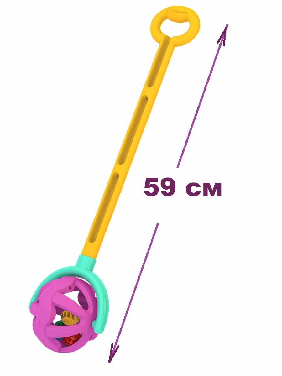 Нордпласт Игрушка-каталка нордпласт Шарик с ручкой (желто-фиолетовая) 59х15х12 см.