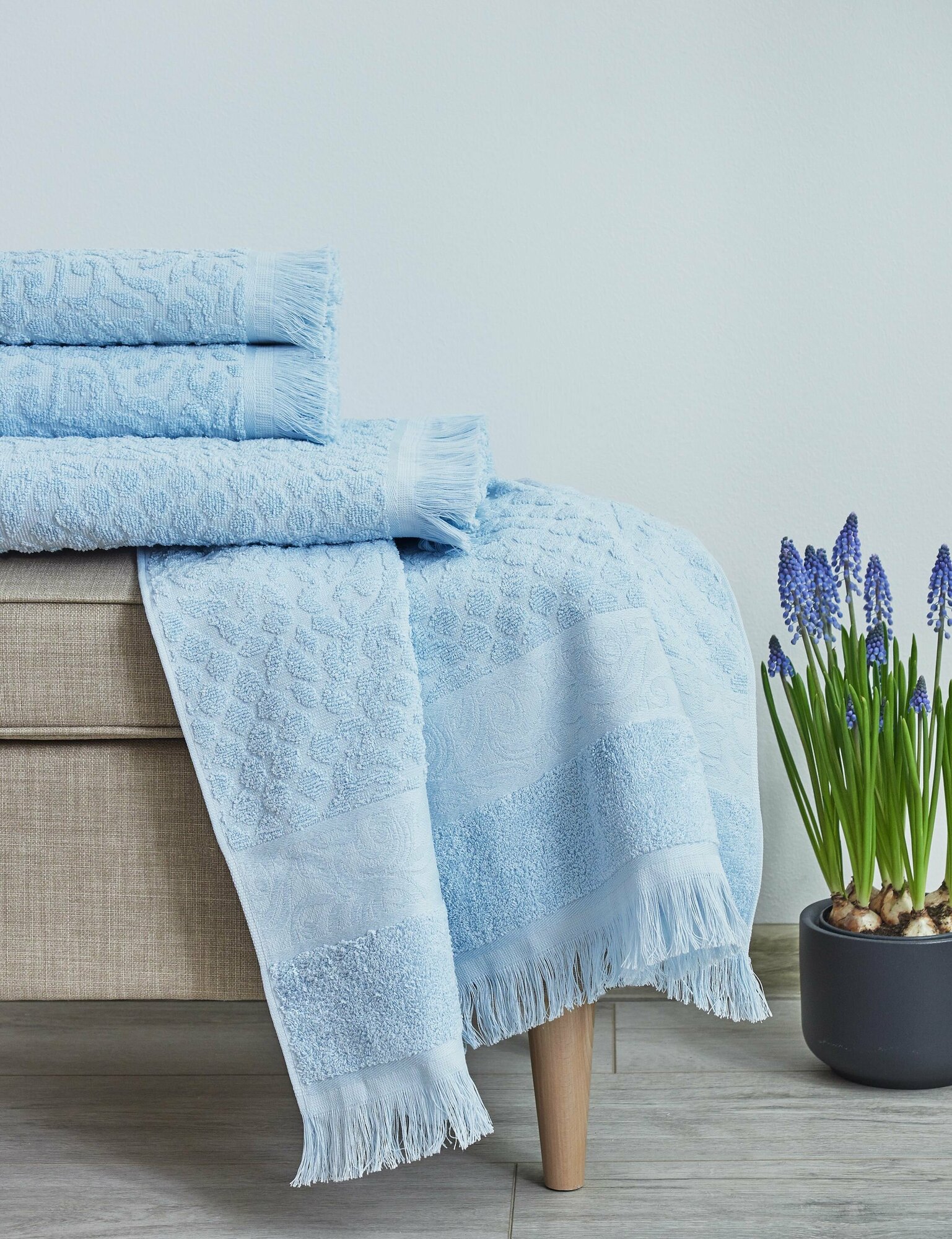 Махровое полотенце с жаккардом (1 шт) "Буше" Guten Morgen (светло-голубой), Полотенце 70x130