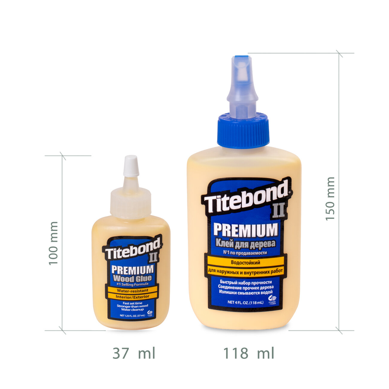Клей для дерева TITEBOND II PREMIUM WOOD GLUE влагостойкий ПВА 118 мл, 2шт