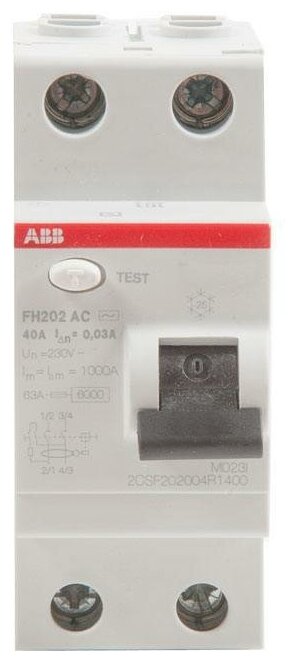Купить УЗО (устройство защитного отключения) ABB FH202 40А 6kА 30мА 2P тип AC 2CSF202002R1400