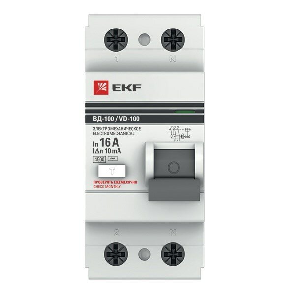 Купить EKF Устройство защитного отключения УЗО ВД-100 2P 16А/ 10мА (электромеханическое) PROxima elcb-2-16-10-em-pro