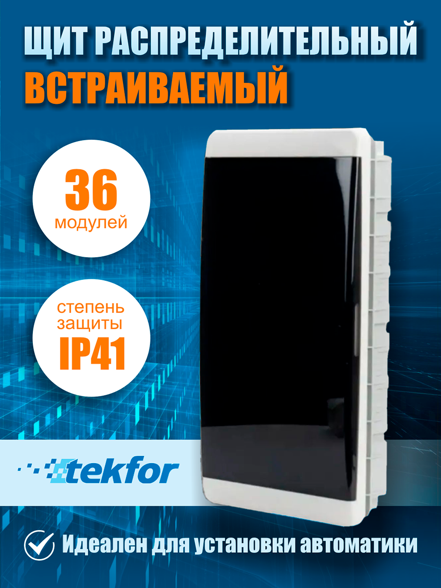 Щит встраиваемый 36 модулей прозрачная черная дверца TEKFOR IEK