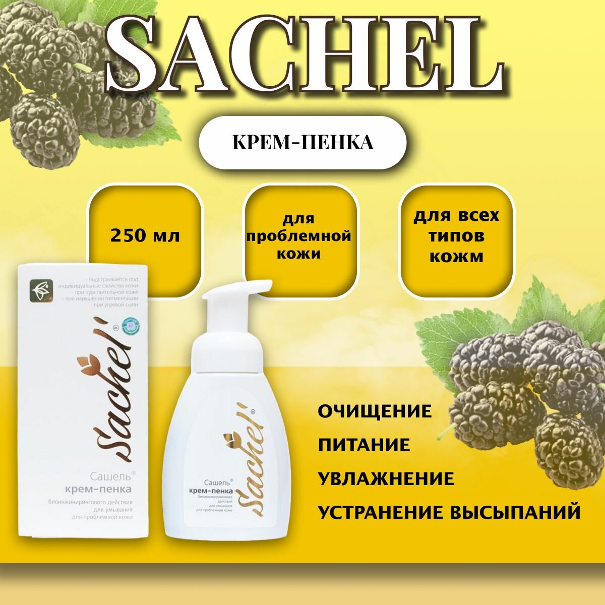 Сашель крем-пенка натуральная для умывания для проблемной кожи 250 мл