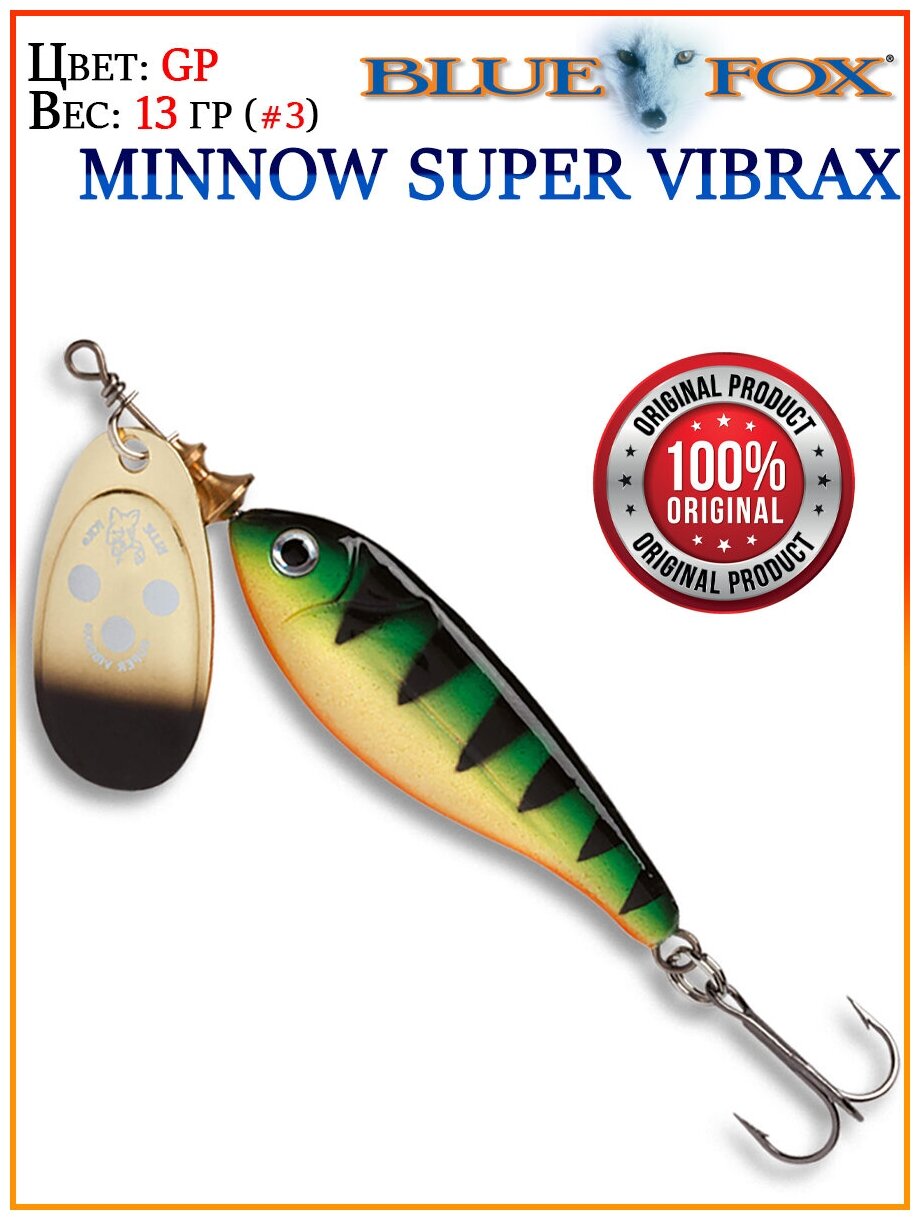 Ниже Вы можете прочитать отзывы на Блесна вращающаяся Blue Fox Minnow Super Vibrax 3 13гр #GP, ознакомится с подробными характеристиками, посмотреть интересные обзоры и фотографии на Блесна вращающаяся Blue Fox Minnow Super Vibrax 3 13гр #GP.
