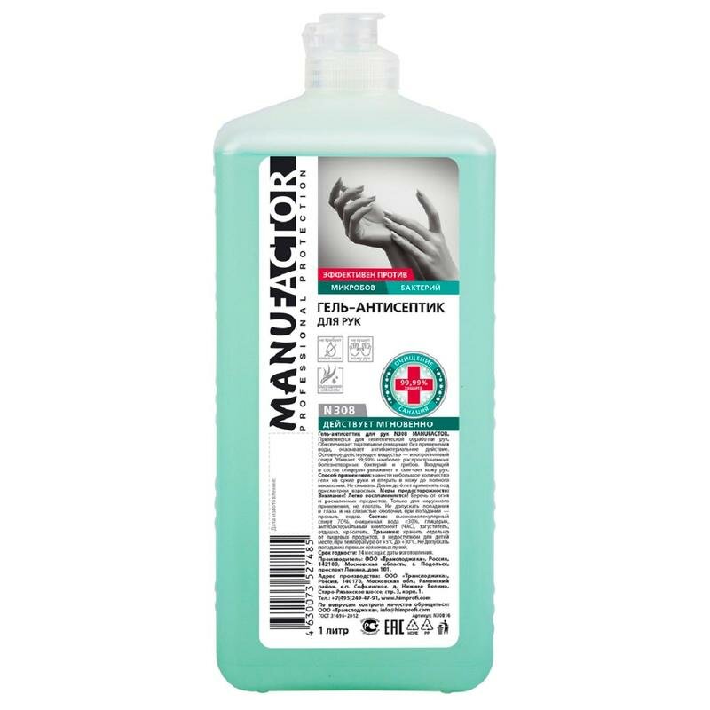 Промышленная химия Manufactor N30860, 1л, гель для дезинфекции рук и поверхностей