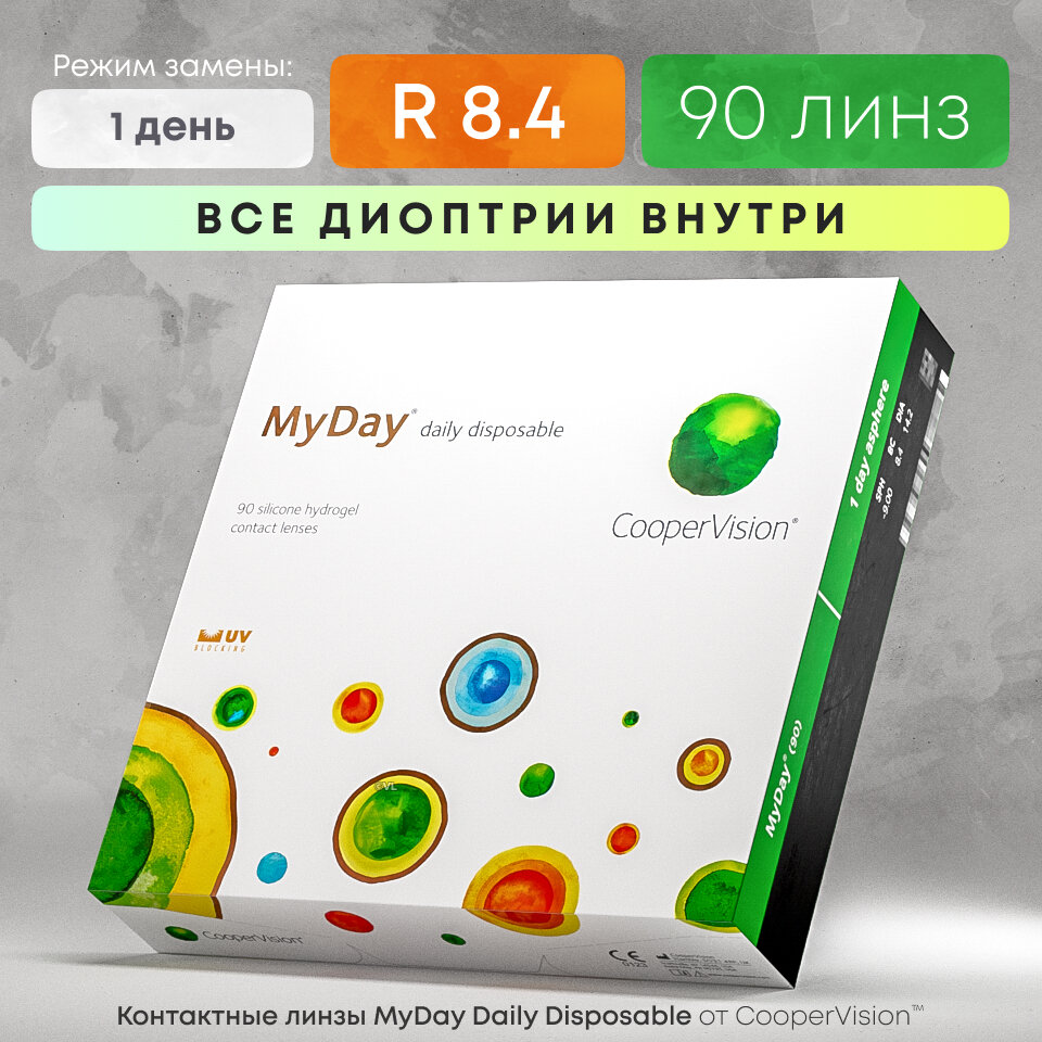 "Контактные линзы CooperVision MyDay Daily Disposable (90 линз) -0.25 R 8.4, однодневные, прозрачные"