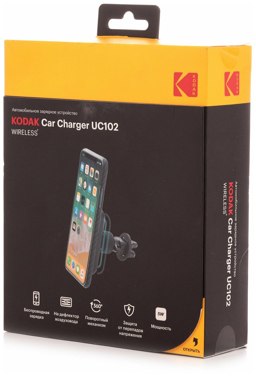 Магнитный автомобильный держатель KODAK UC102, крепление на дефлектор воздуховода, с функцией беспроводной зарядки. Мощность: 5Вт. напряжение: 4,75-5,5В. сила тока: 1,5-2А.