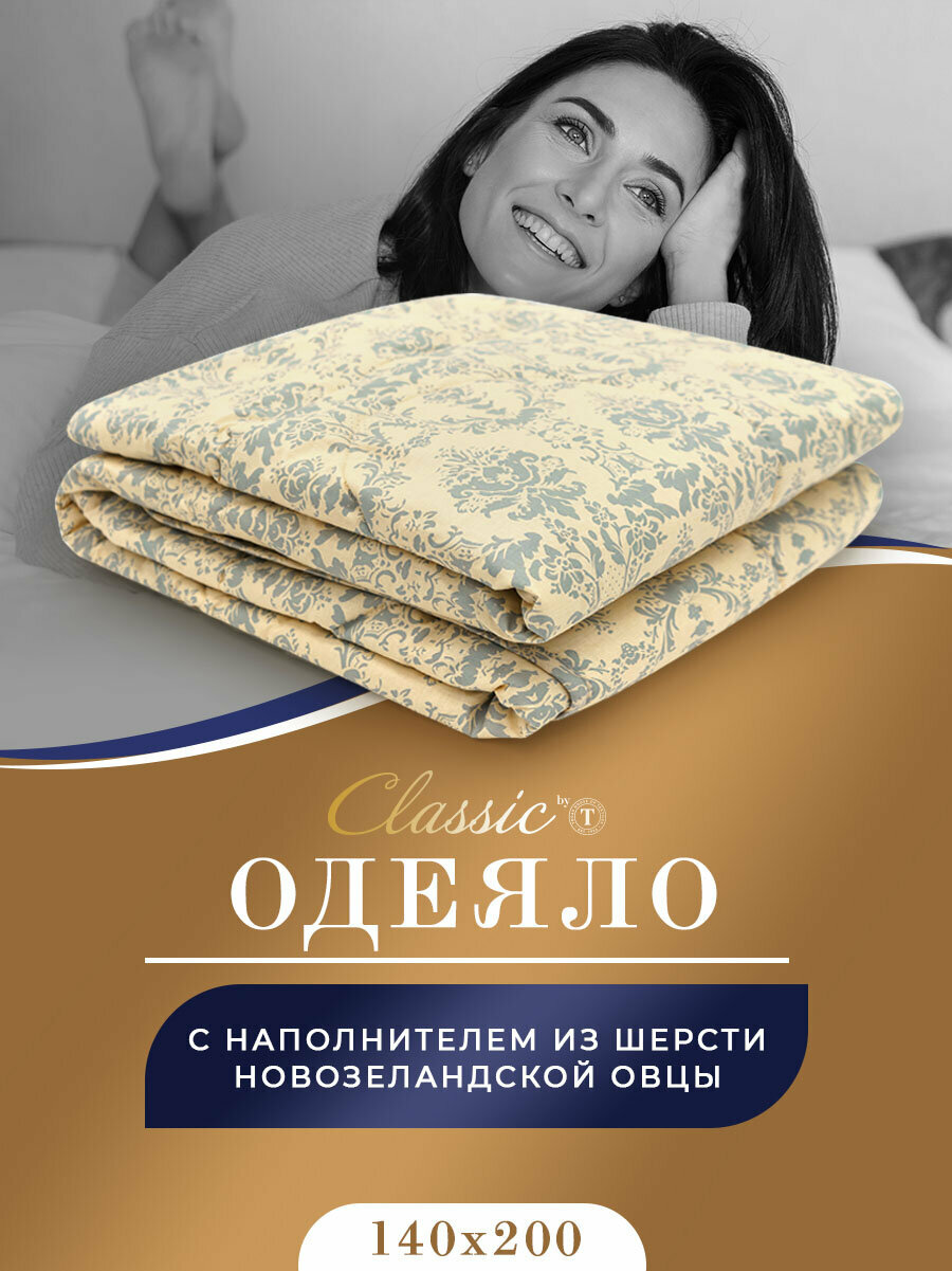 СохранитьCLASSIC by T Одеяло всесезонное Роял Найт, овечья шерсть, цвет: бежевый (140х200 см) интересное: