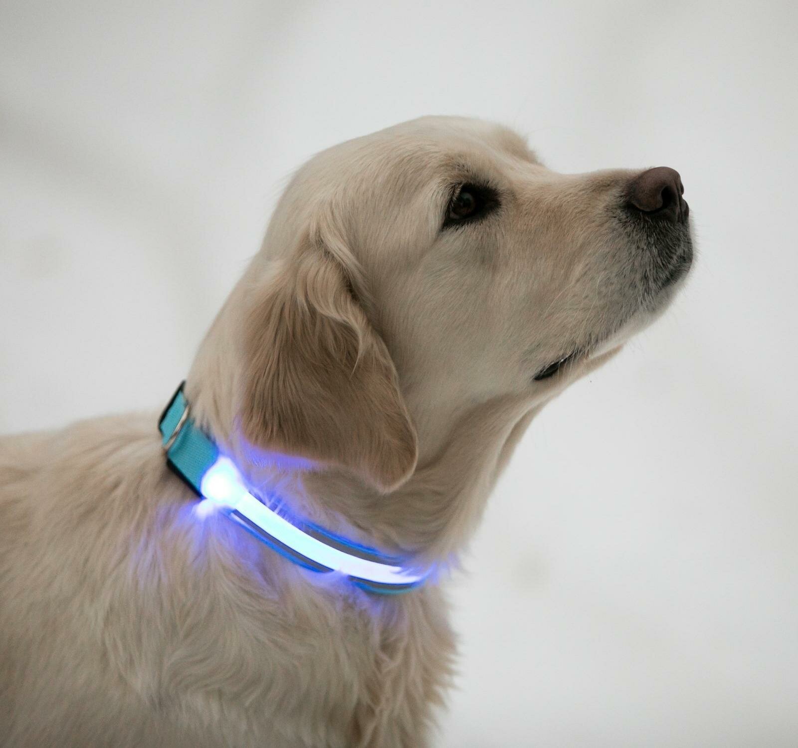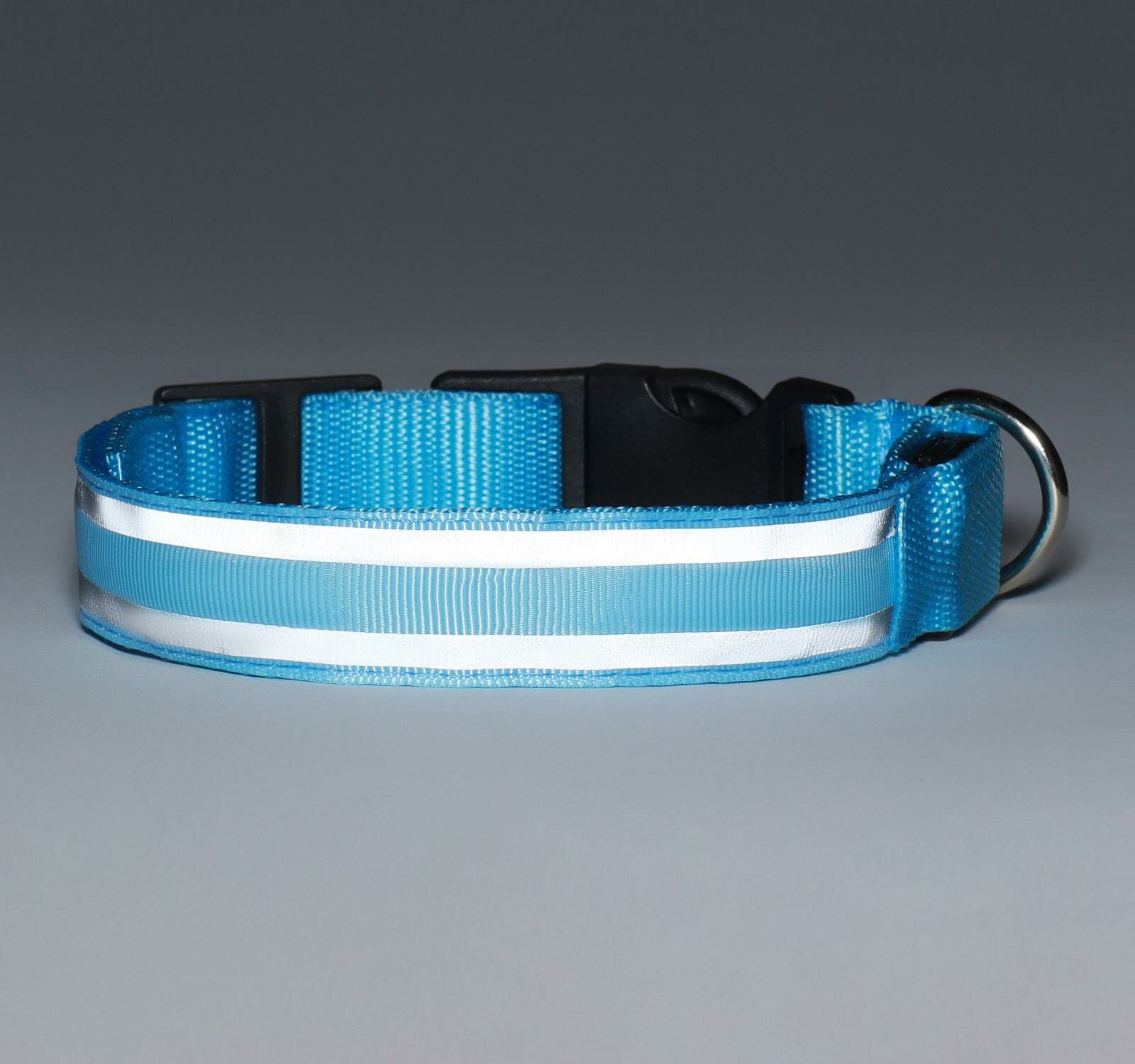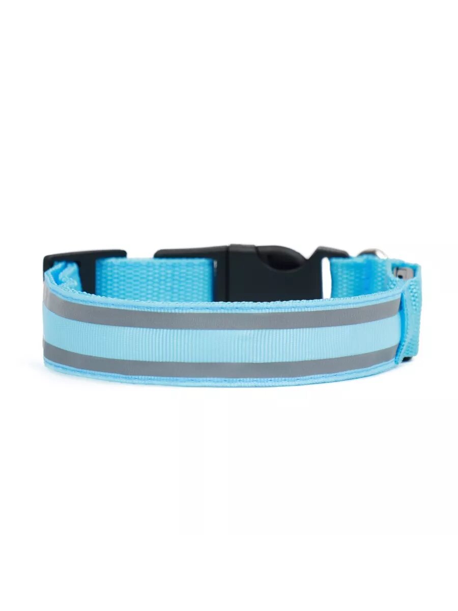 Светящийся ошейник со светоотражателем, 45-50 см, Голубой