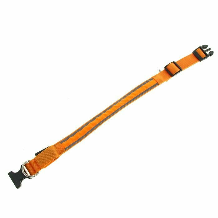 Купить Ошейник с подсветкой "Двойная полоса", размер XL, ОШ 52-60 х 2,5 см, 3 режима свечения, оранж 1039