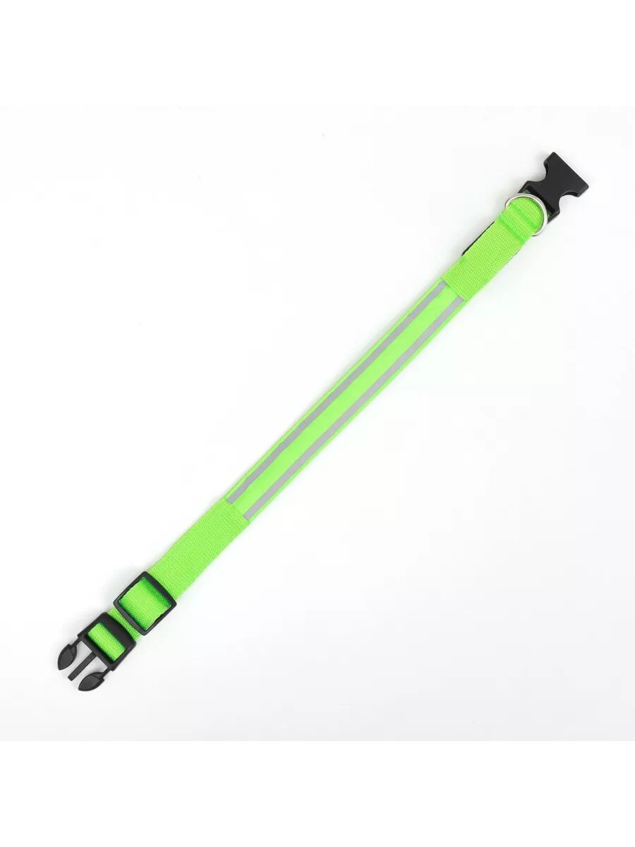 Для ежедневного использования ошейник Пижон с подсветкой 2 светоотражающими полосами , зеленый, S
