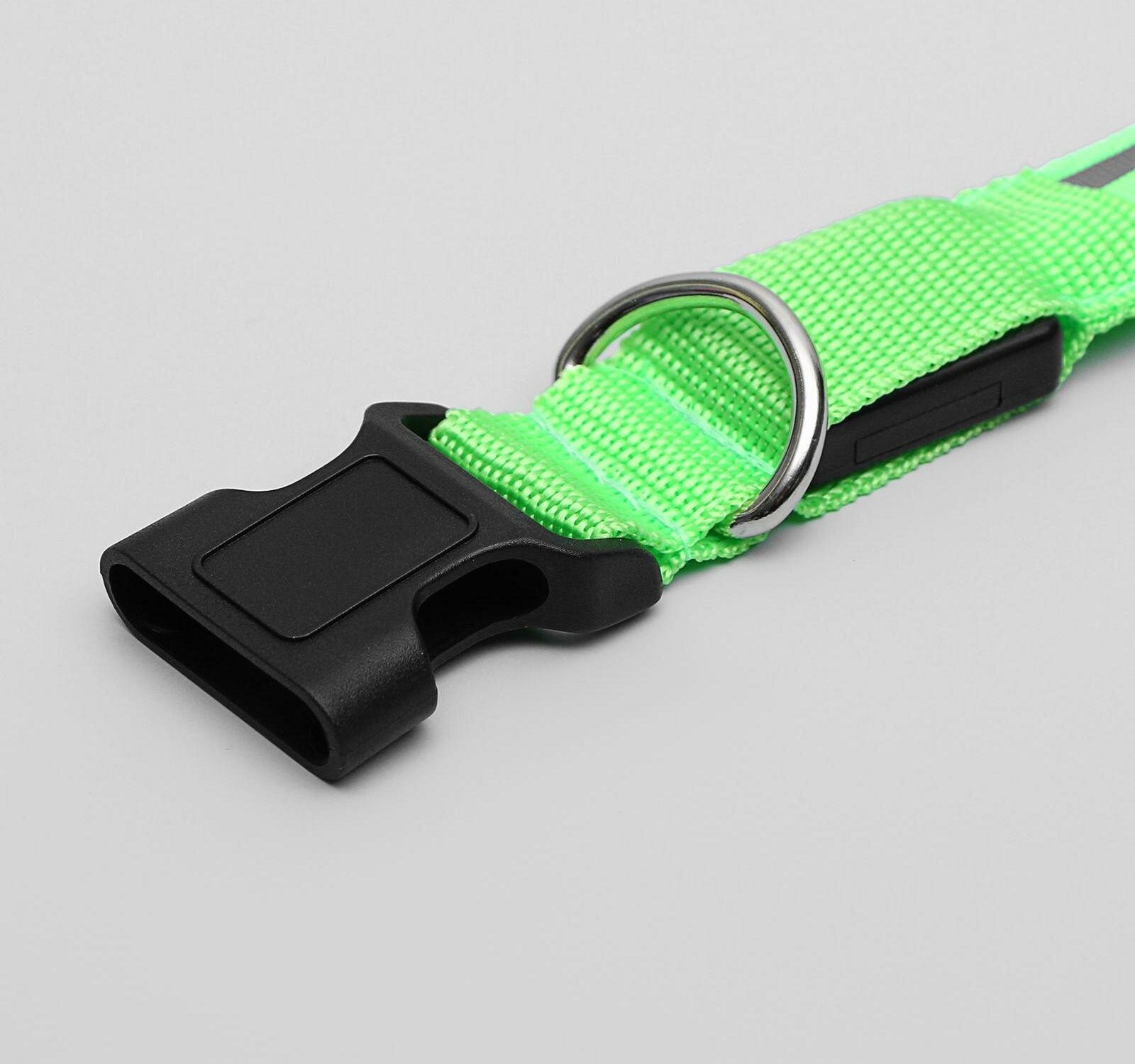 Ошейник с подсветкой Двойная полоса размер S, ОШ 35-43 х 2,5 см, 3 режима свечения зелёный, 1039597