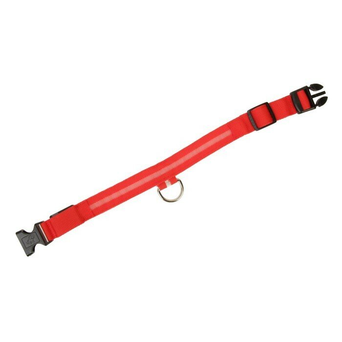 Ошейник с подсветкой размер М, ОШ 40-48 х 2,5 см, 3 режима свечения красный