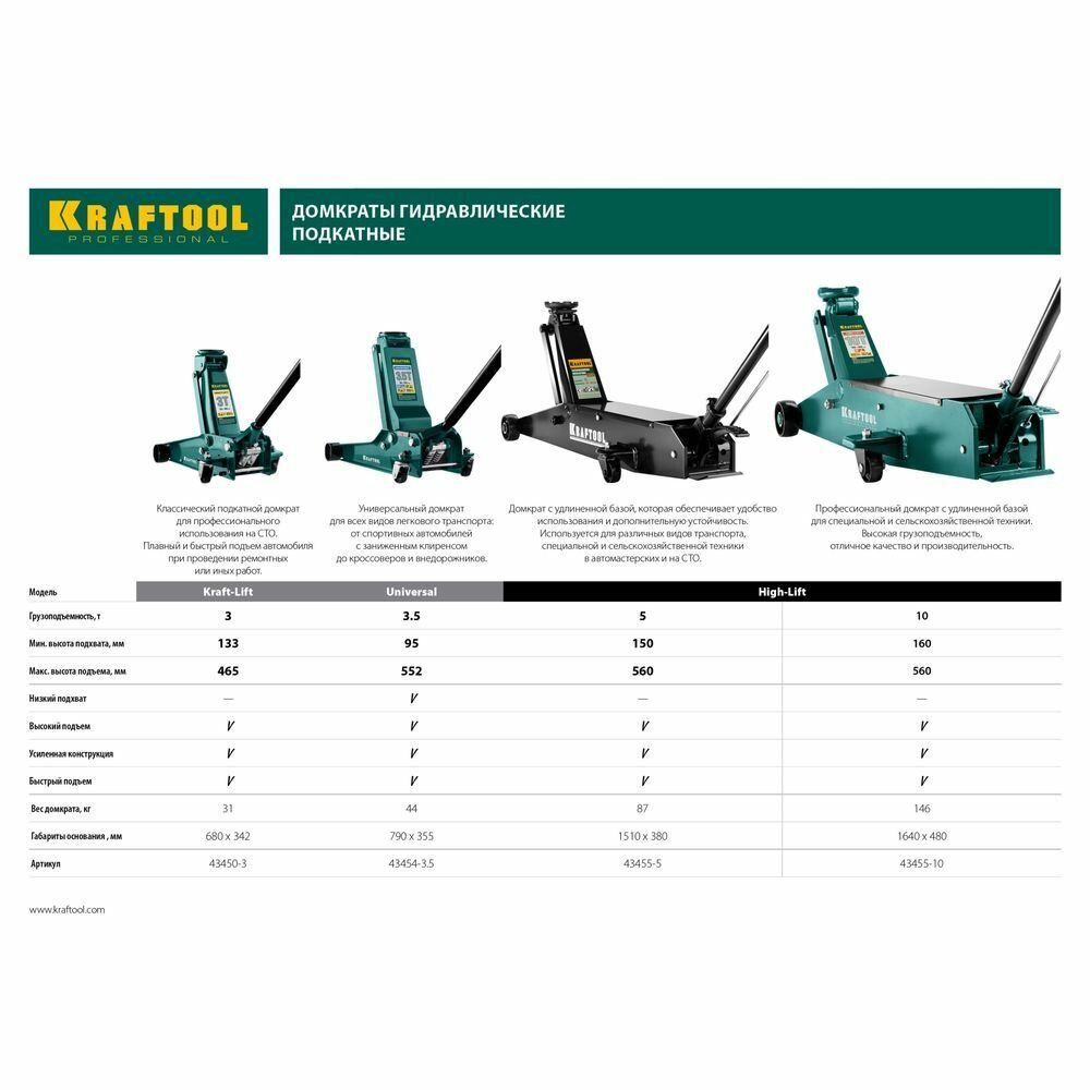 Ниже Вы можете прочитать отзывы на Домкрат подкатной 10т KRAFTOOL 43455-10, ознакомится с подробными характеристиками, посмотреть интересные обзоры и фотографии на Домкрат подкатной 10т KRAFTOOL 43455-10.