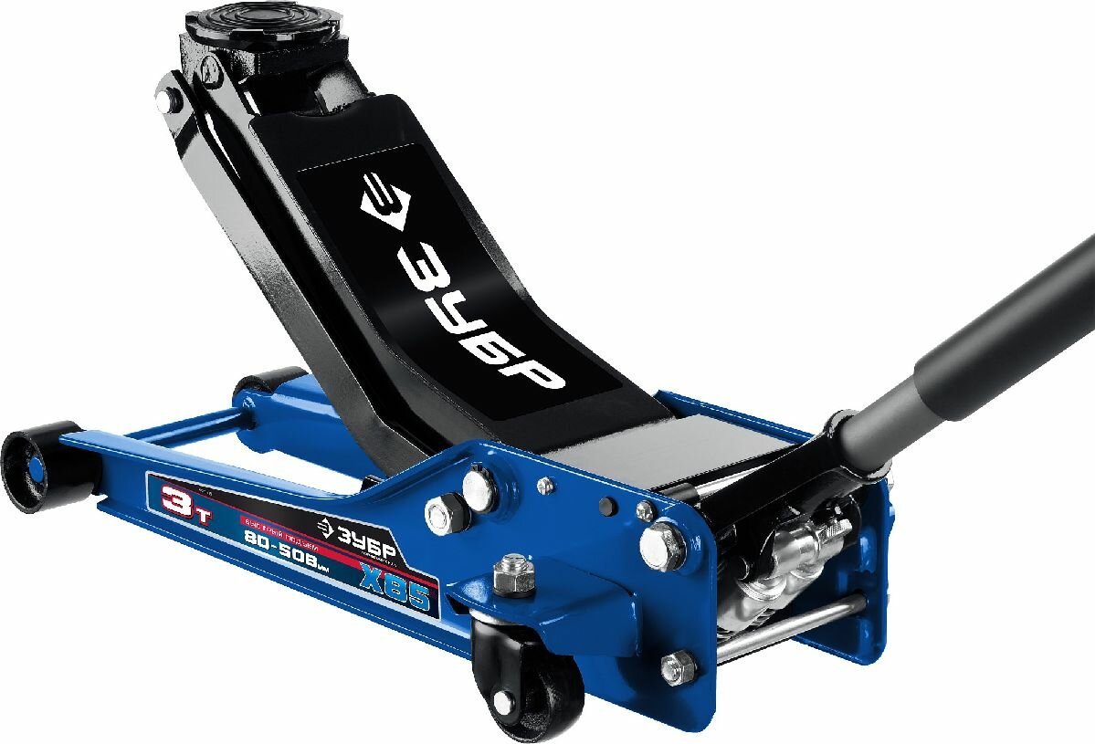 ЗУБР X85, 2.5т, 75-515 мм, Универсальный гидравлический подкатной домкрат для СТО, Профессионал (43051-3)