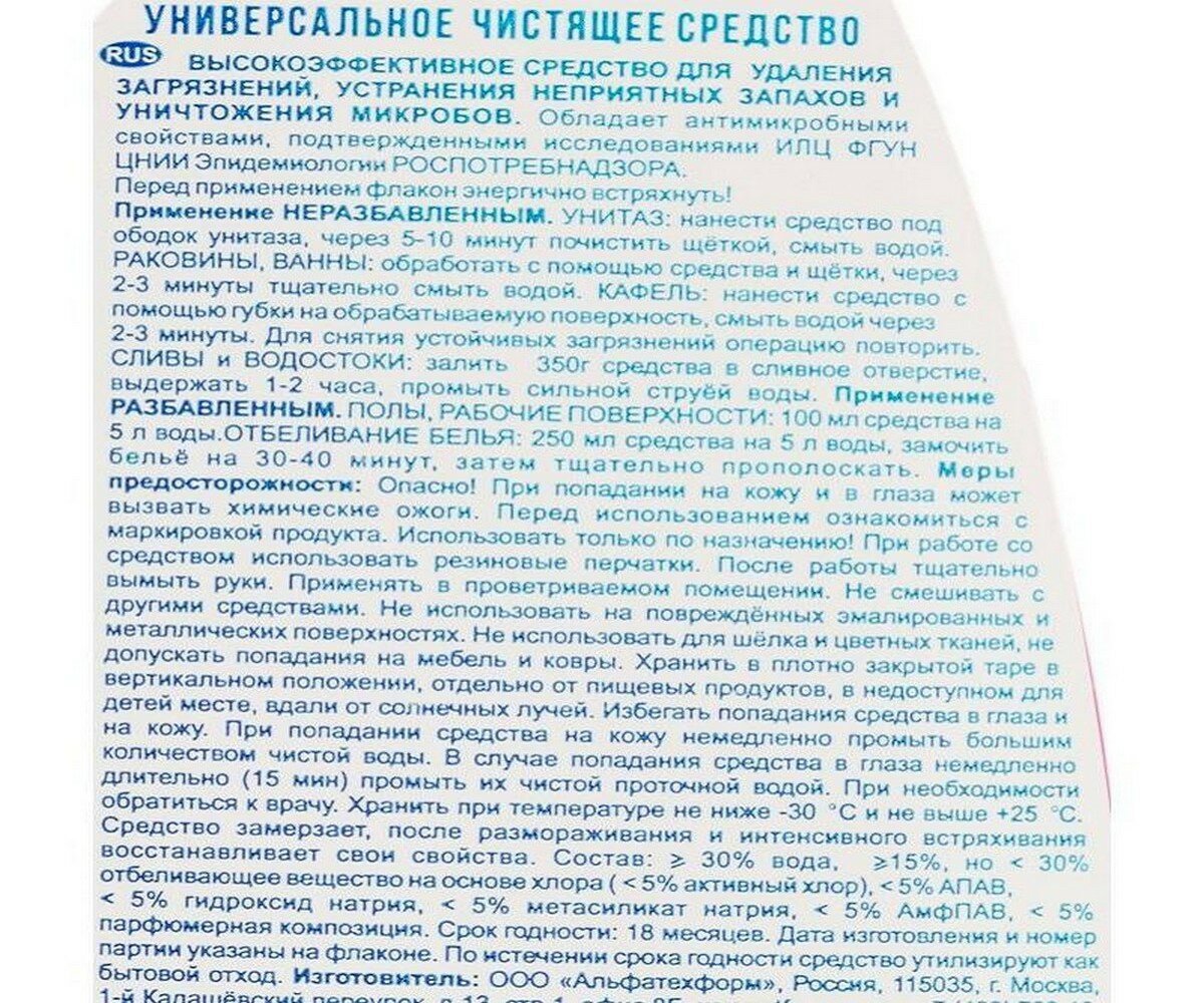 Альфатехформ Чистящее средство универсальное Help Лимон 750 мл