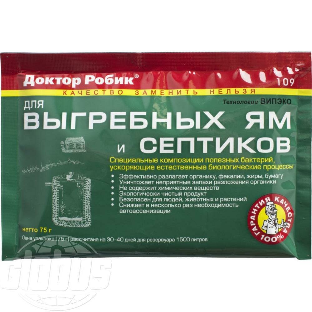 Ниже Вы можете прочитать отзывы на Биопрепарат Доктор Робик 75г №109 для выгр.ям и септиков, ознакомится с подробными характеристиками, посмотреть интересные обзоры и фотографии на Биопрепарат Доктор Робик 75г №109 для выгр.ям и септиков.
