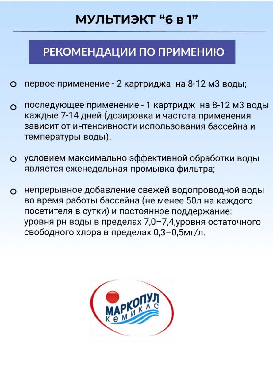 Химия для бассейна (маркопул кемиклс мультиэкт 6в1 картриджи, 0.8кг ( 12 шт) ХИМ18)