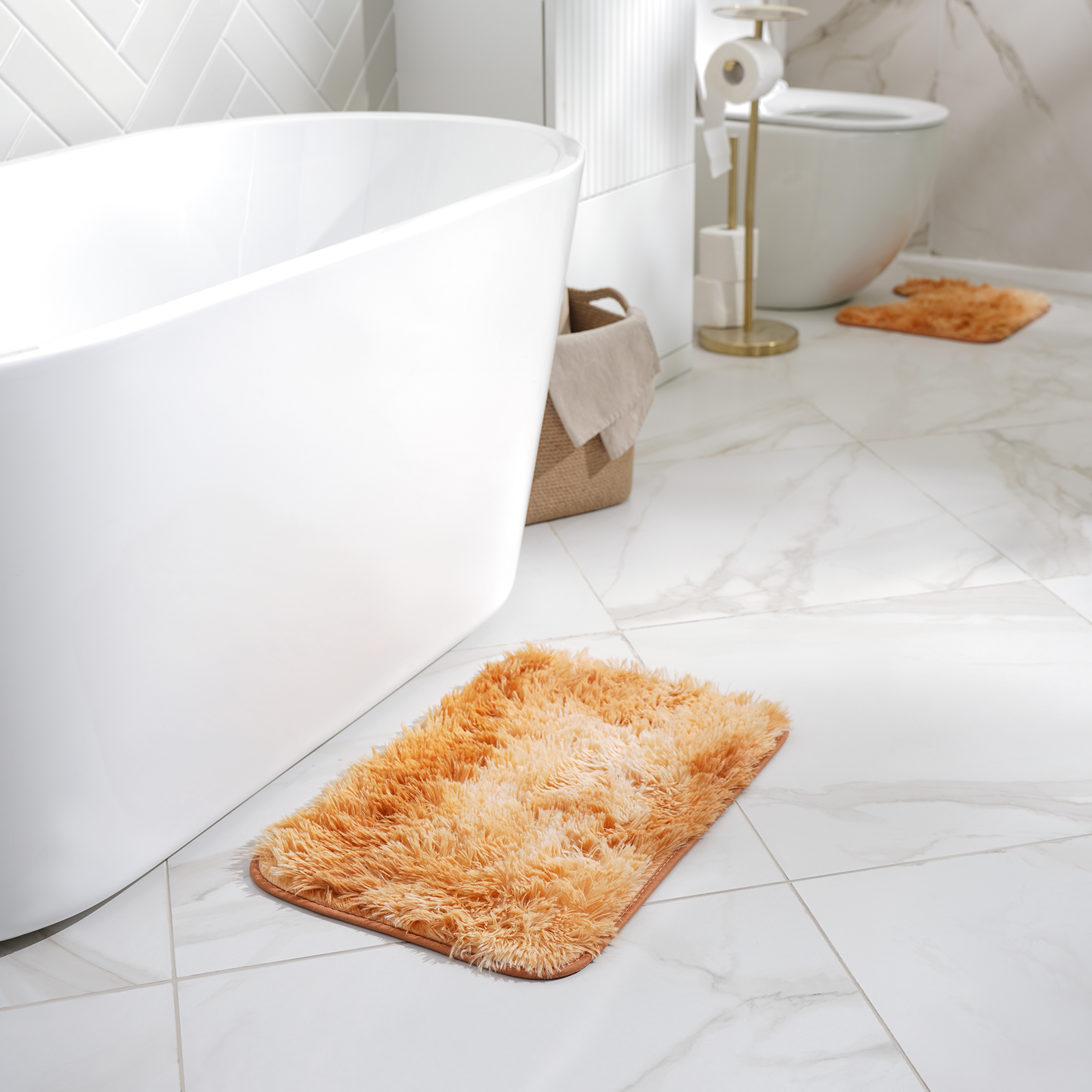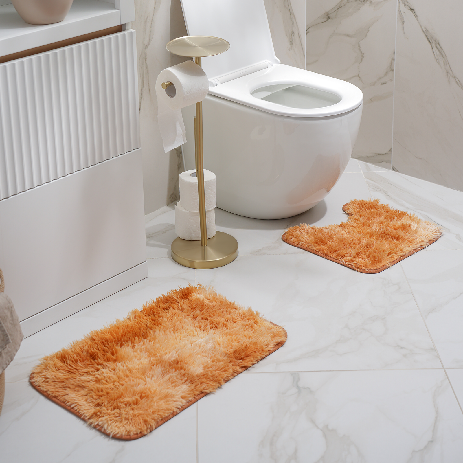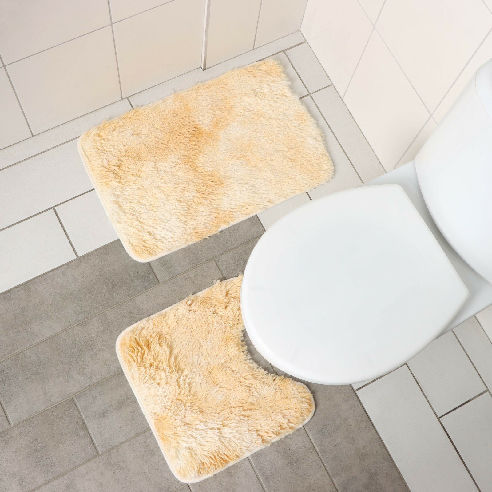 Коврики для ванной и туалета «Пушистик», 2 шт: 35×40 см, 40×60 см, цвет бежевый