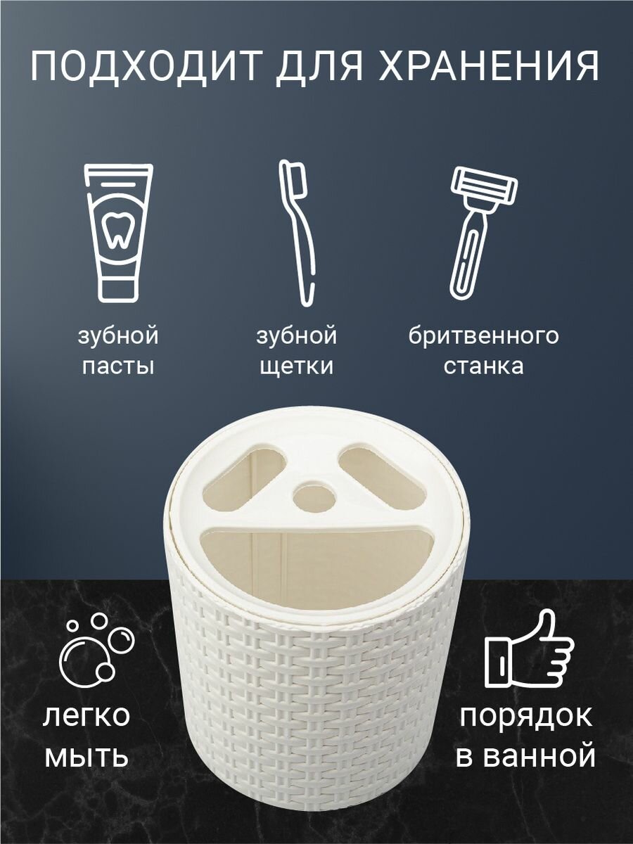 Подставка для зубных щеток и пасты, держатель для ванной, стакан для хранения зубной щетки Альтернатива Плетенка, белый