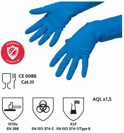 Перчатки латексные Vileda MultiPurpose, синие, размер 9 (L), 1 пара (100754)