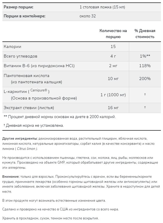 | Тип | L-карнитин |