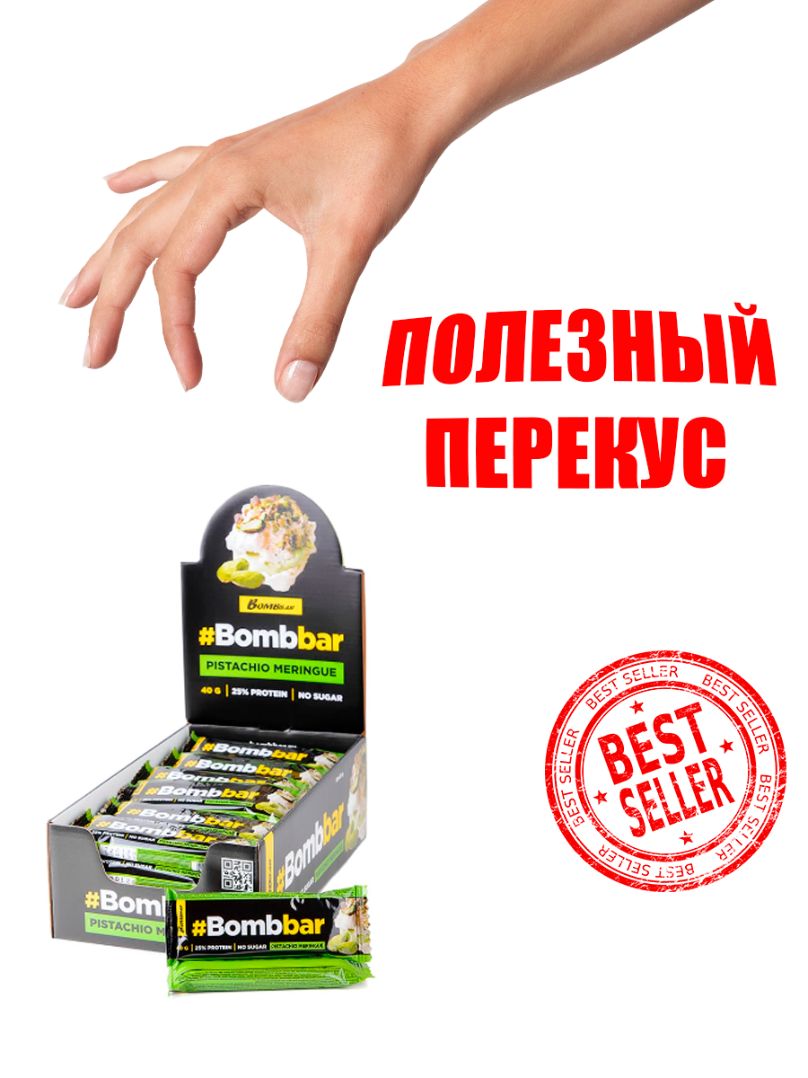 Батончик BombBar Фисташковая меренга в шоколаде протеиновый 40 г