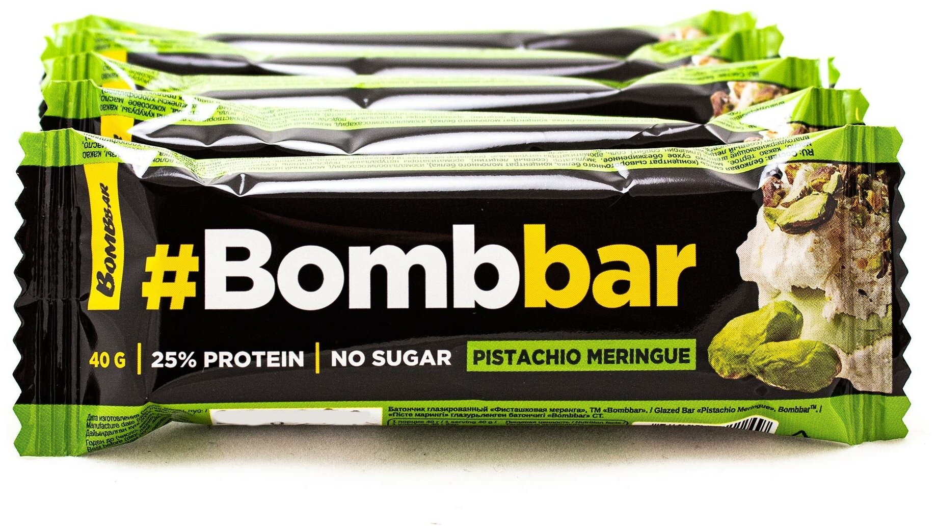 Bombbar, Протеиновый батончик в шоколаде, упаковка 30шт по 40г (фисташковая меренга)