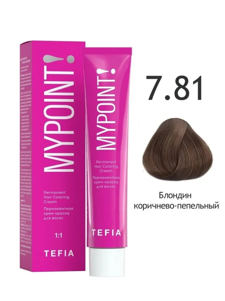Купить TEFIA Mypoint 7.81 Перманентная крем-краска для волос / Блондин коричнево-пепельный, 60 мл