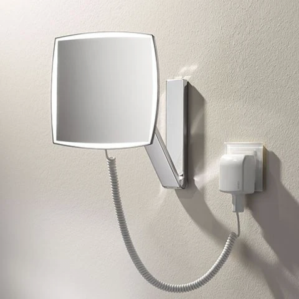Зеркало косметическое Keuco iLook_move квадратное, со штекером, настенное, LED-подсветка, 20x20см, хром 17613 019001