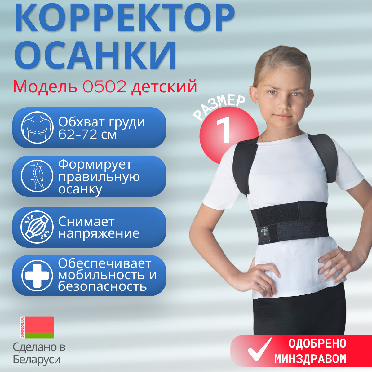 Купить Корректор осанки модель 0502 размер 1, обхват груди 62-72 см, длина спины до талии 31-33 см (черный)