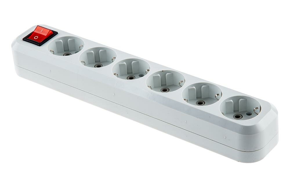 Колодка розеточная 6 гнезд 2П+З с выключателем16А 250В белая TDM {SQ1806-0040}
