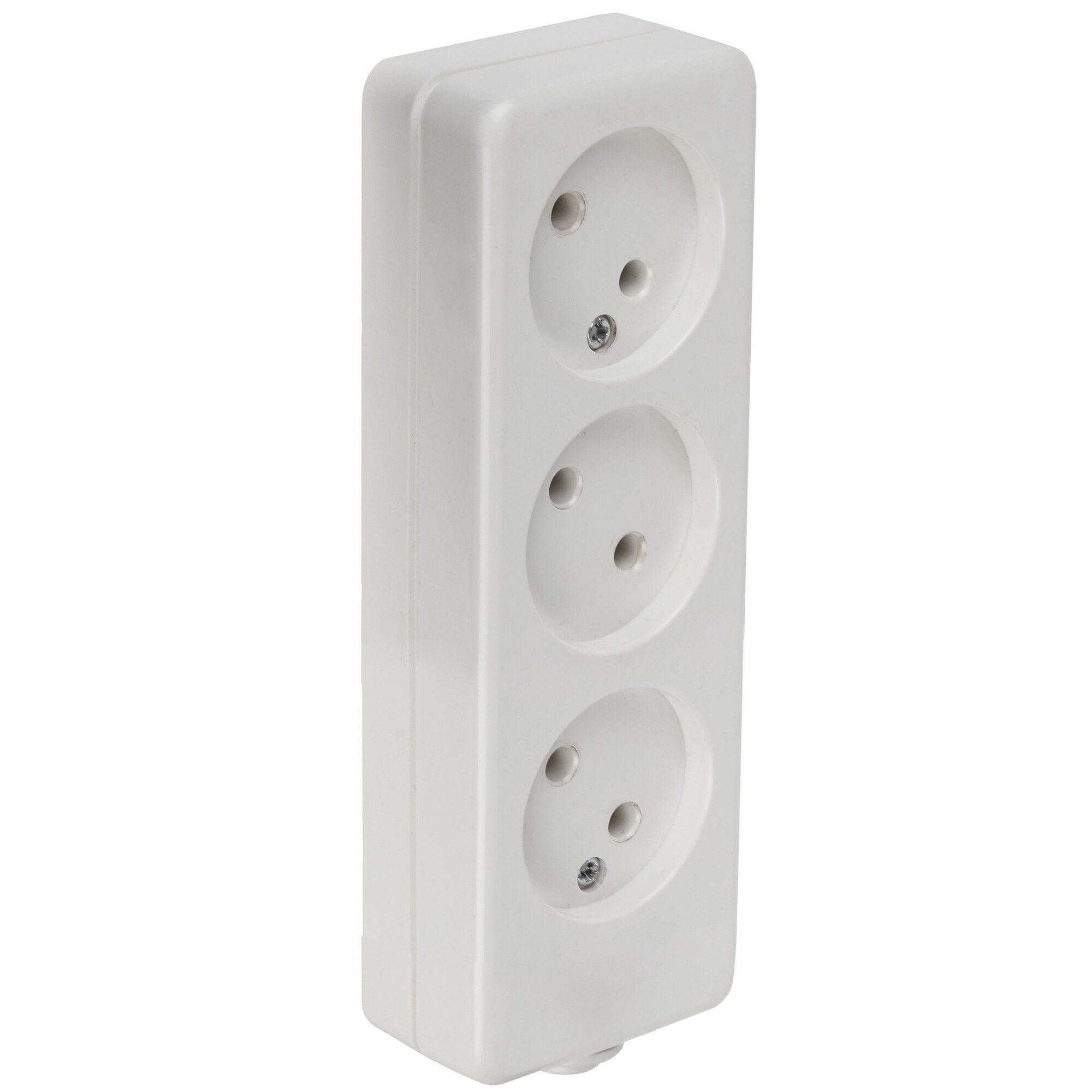 Тройник для розетки электрический с заземлением 16А, белый