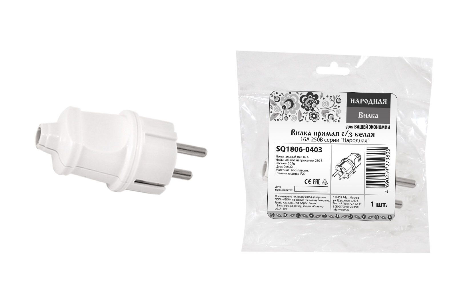 Вилка прямая с/з белая 16А 250В серии "Народная" SQ1806-0403