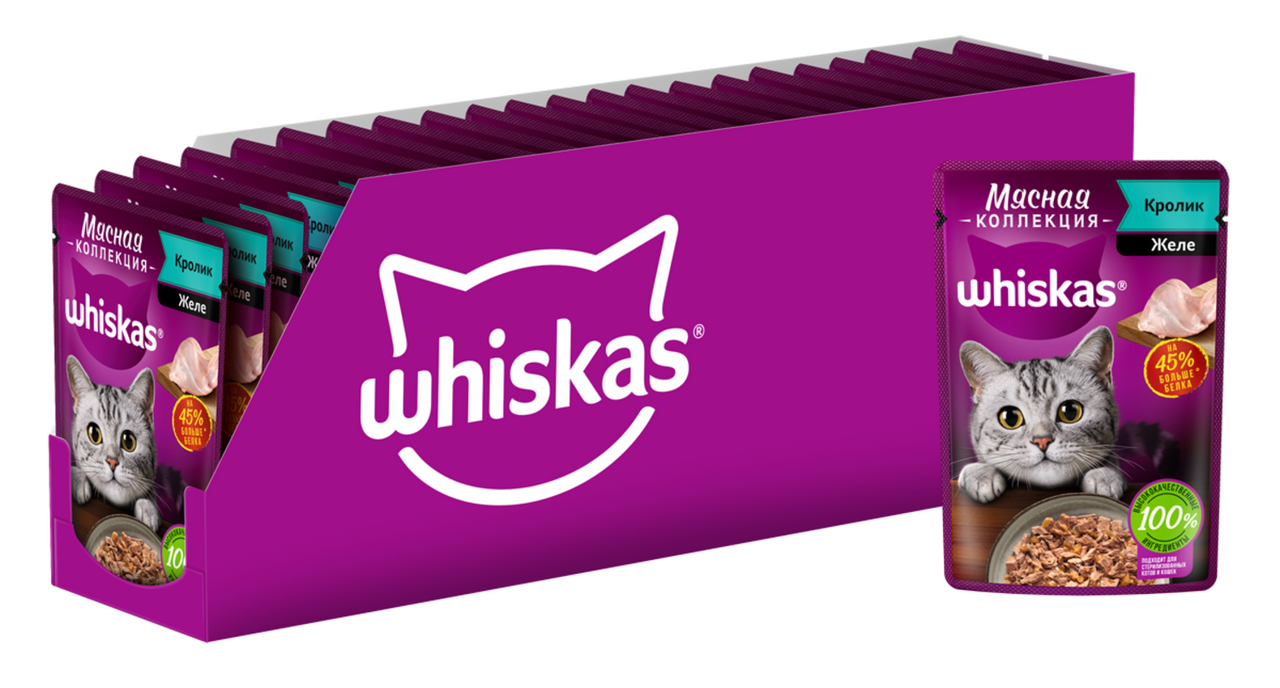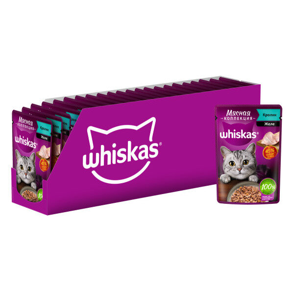 Whiskas влажный корм для кошек, мясная коллекция, кролик в желе (28шт в уп) 75 гр