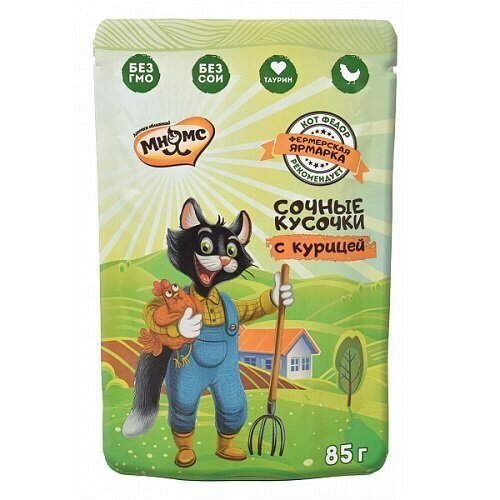 Консервы Мнямс пауч сочные кусочки для кошек с курицей Фермерская ярмарка линия Кот Федор 85г, 12 уп