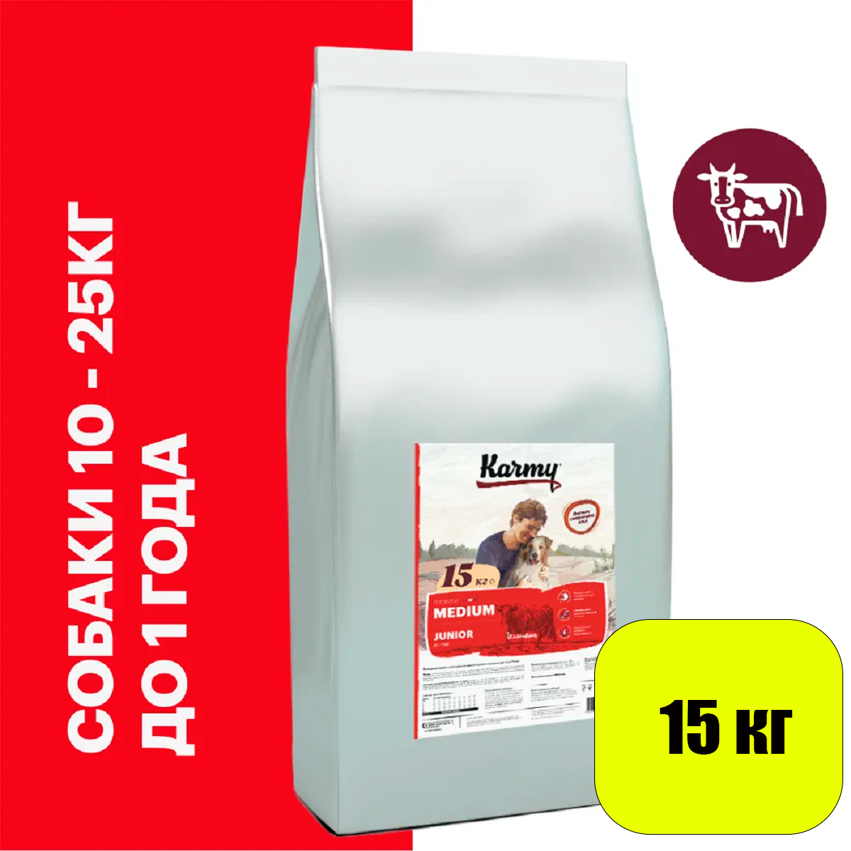 Купить Karmy Medium Junior сухой корм для щенков средних пород Телятина, 15 кг.