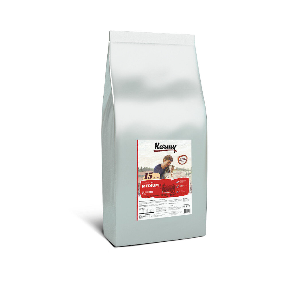 Корм Karmy Medium Junior для щенков средних пород, с телятиной, 15 кг