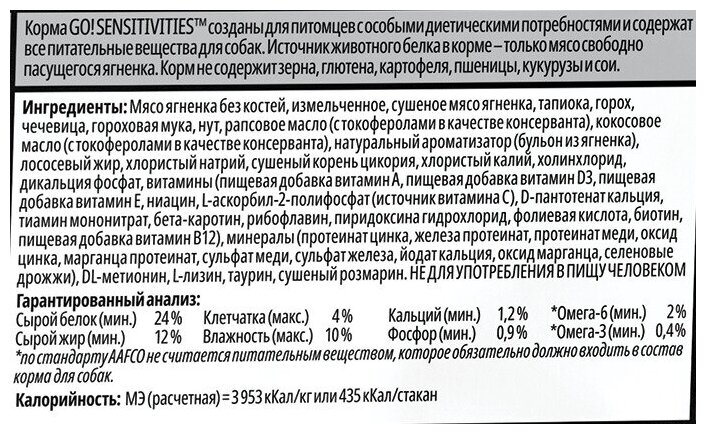GO! Беззерновой для щенков и собак с ягненком для чувст. пищеварения (GO! SENSITIVITIES Limited Ingredient Grain Free Lamb Recipe DF 24/12) 1303095