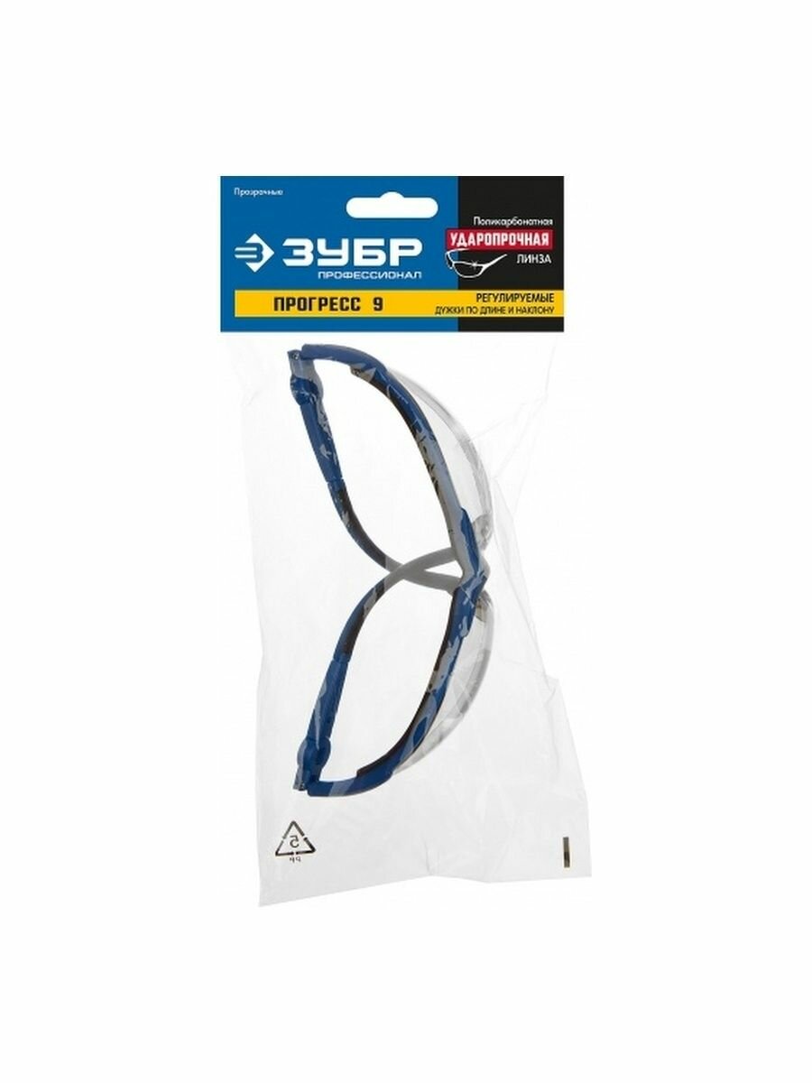 Зубр Прогресс 9 Прозрачные, очки защитные открытого типа, регулируемые дужки. 110310_z01