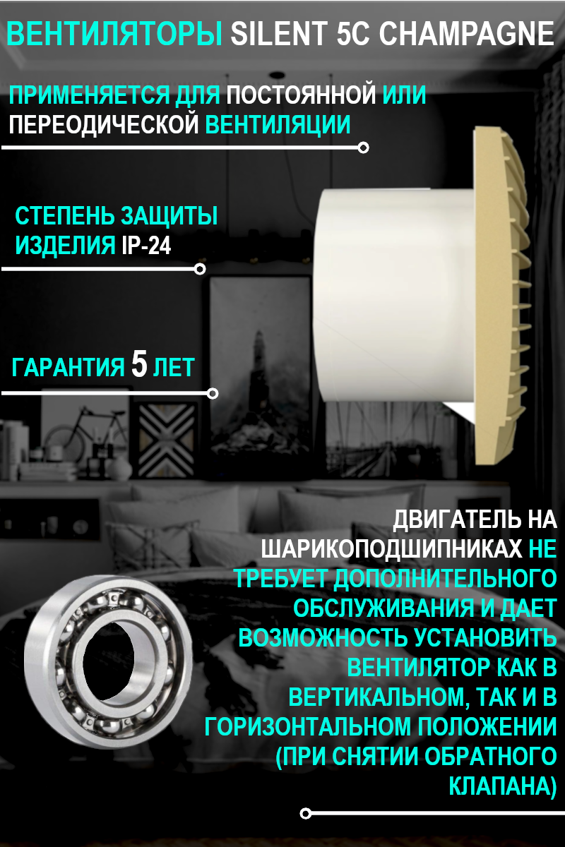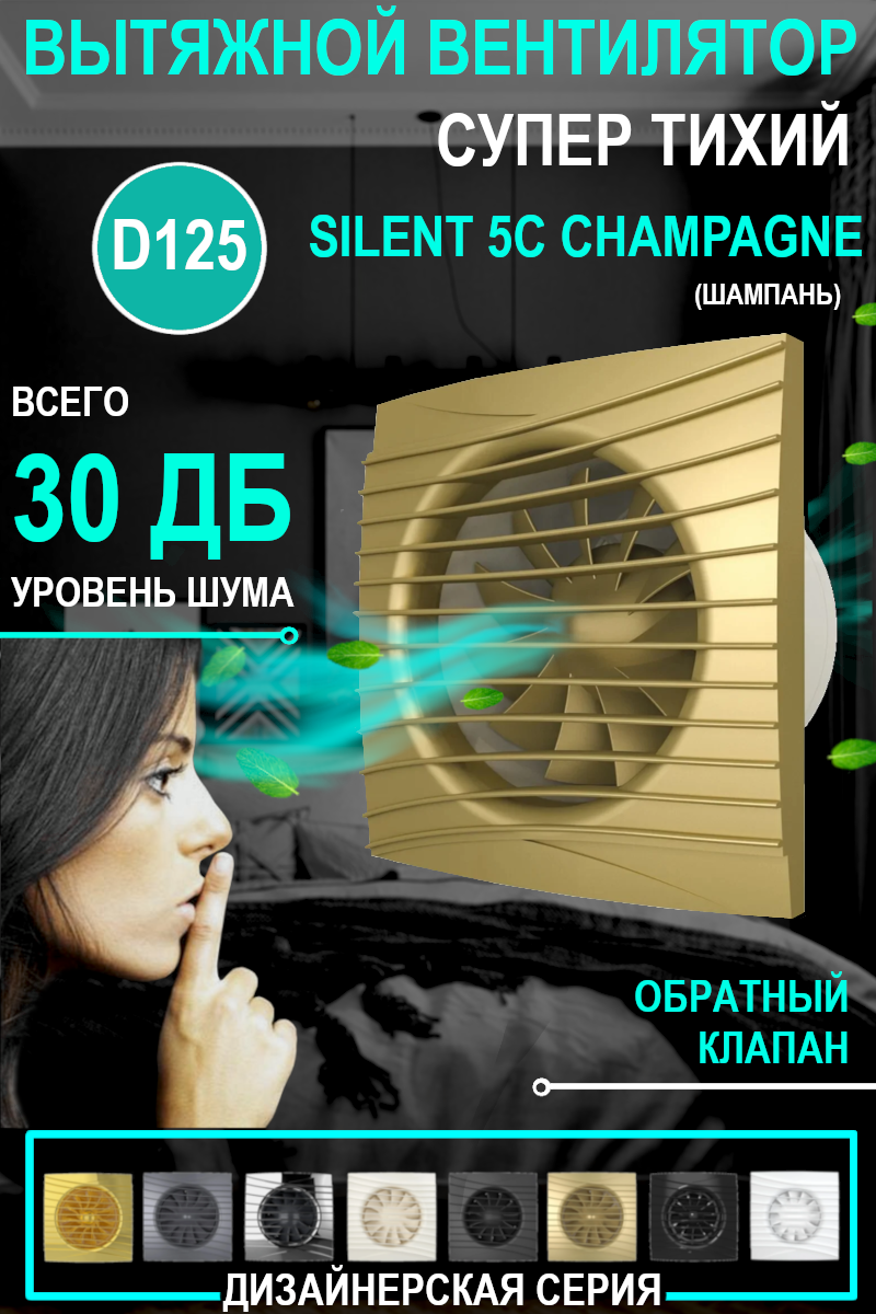 Вентилятор SILENT 5C champagne осевой вытяжной с обратным клапаном D 125