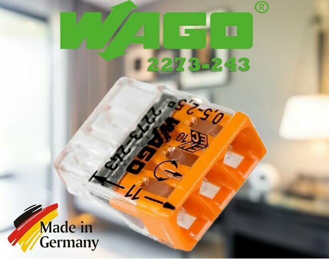 Клемма WAGO.2273-243 с пастой 3х0,5-2,5 мм2 ,оригинал (1 упаковка ) - 100шт