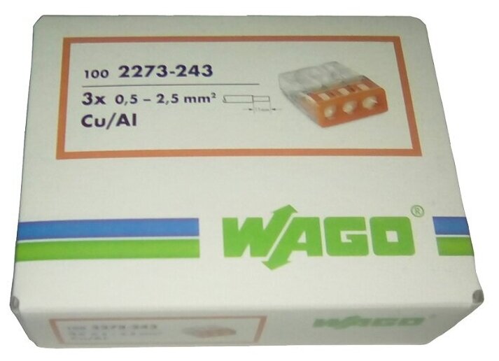WAGO Клемма с пастой для 3-х медных/алюмин. однопроволочных проводников сеч. до 2,5 мм кв. 2273-243 (100шт)
