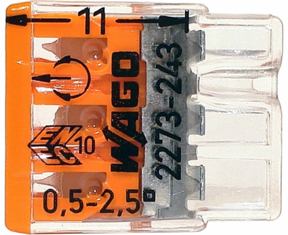 Wago 2273-243 Клемма 3-проводная (0,5-2,5 кв.мм) с пастой оранжевая (1 шт)