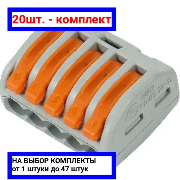 Клеммник 20шт пятерная (одножильных или многожильных) х 0,08-4мм2 32A Cu 222-415 Ваго