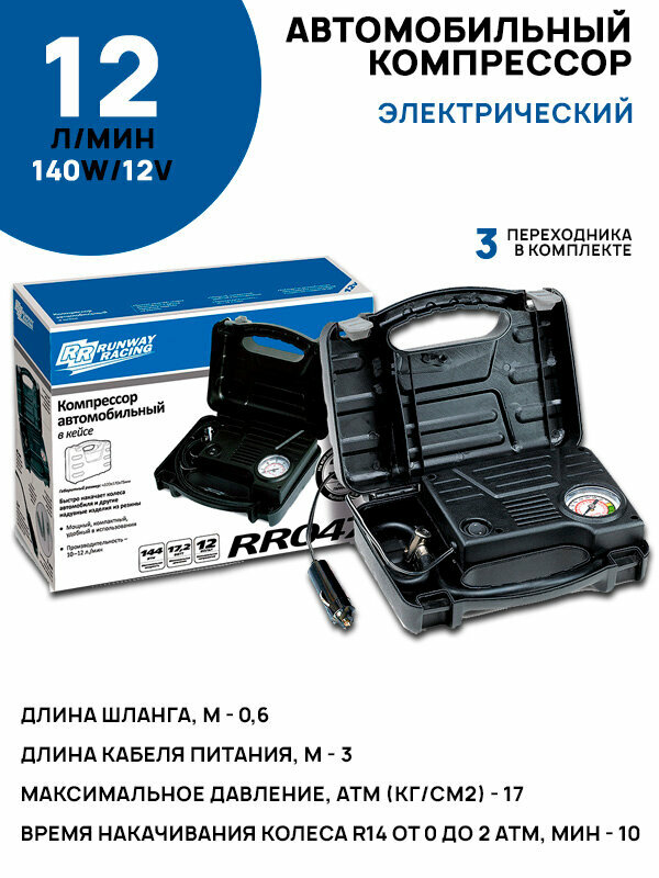 Компрессор автомобильный с манометром, 10-12 л/мин, Runway Racing RR047